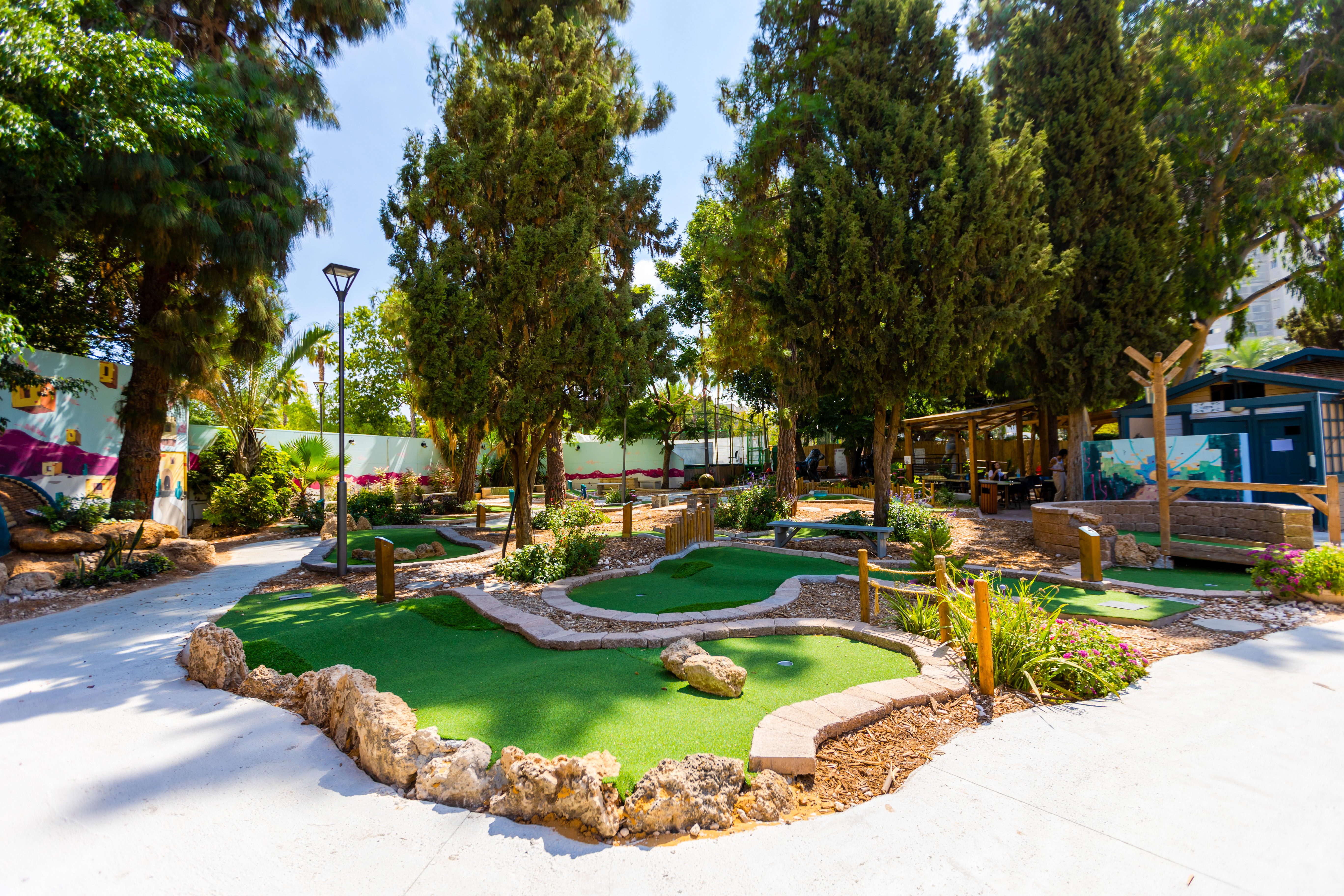מסלול המיני גולף כולל 18 תחנות ברמות קושי שונות + תחנת אימון לתרגול החבטות. המסלול עובר בין נקודות קסומות ובהן באר מים, מזרקה, בקתה עתיקה ובריכת דגים, בתוך חורשה מוצלת מלאה בציורי קיר וחפצי אומנות